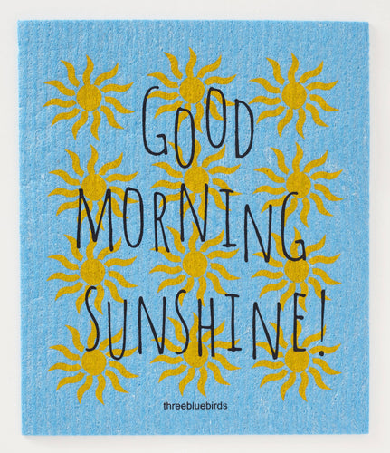 Good Morning Sunshine on Blue Swedish Dishcloth